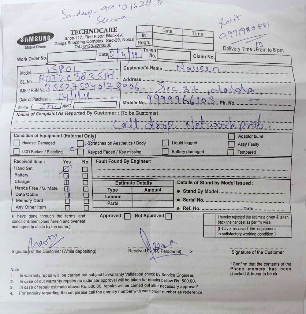On my second visit to the service station, I had to give my phone as the remedy suggested by the service centre staff was a replacement of the mother board. I was supposed to get a call from them when the phone was fixed but I never heard from them. I went there a week later to check and they gave me back the phone but with a new problem.